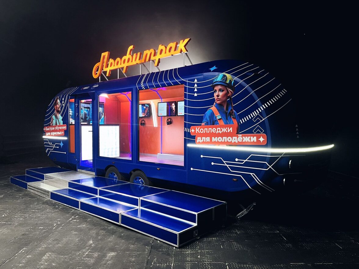 «Профитрак» представляет собой яркий фургон, в котором посетителям предлагают получить представление о десятке профессий. Внутри спрятана полноценная передвижная лаборатория по профориентации. Здесь бесплатно можно узнать о программах обучения и возможностях для трудоустройства в интерактивном формате, а старшеклассники могут пройти тестирование и выбрать подходящий колледж вместе с карьерными наставниками центра «Профессии будущего».