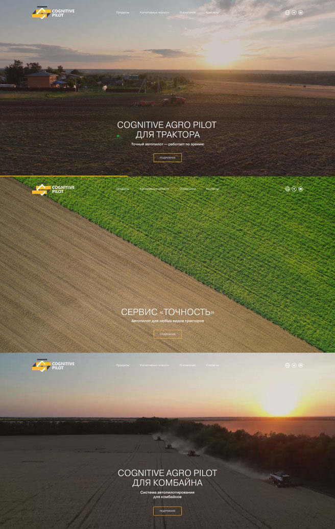 Выбор пал на современный послайдовый стиль (в том числе это было основное требование заказчика по дизайну), который отлично сочетался с образом передовой технологической компании.