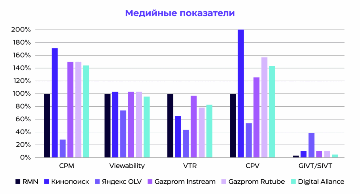 Параметры сравнения: CPM, VTR, CTR, Viewabillity, конверсия в целевые действия.Чтобы сделать размещение на новой площадке максимально прозрачным, мы установили расширенный верификационный код. С его помощью можно отслеживать показы, оценивать post view эффективность, а также замерять досматриваемость и видимость видеороликов.