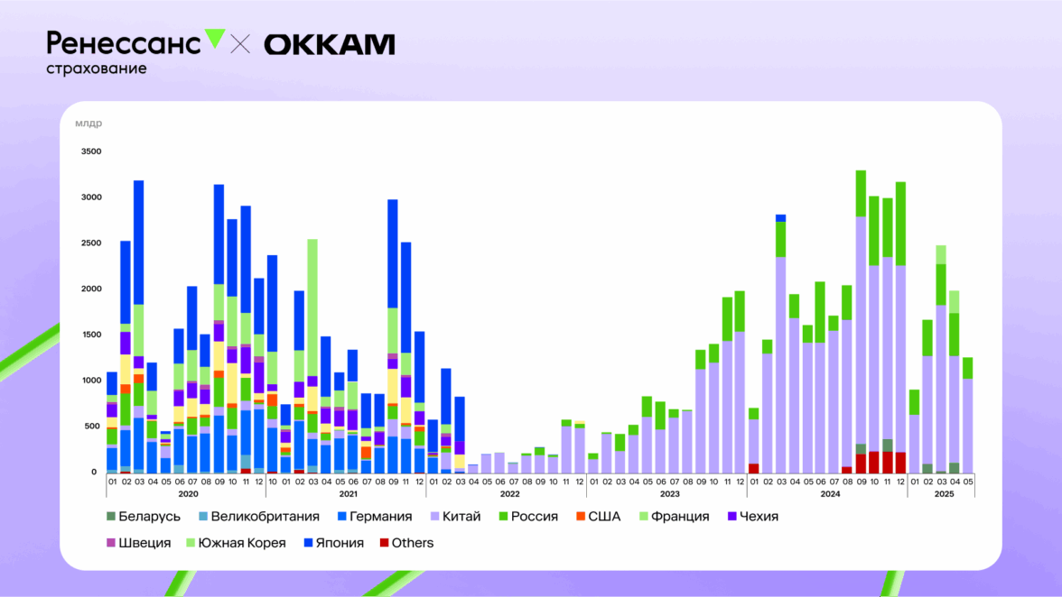 Рост владельцев китайских авто среди клиентов «Ренессанс страхование»: ×3 (+200%). В то время как общий рост продаж китайских авто по рынку составил +80% (данные Автостата ‘24 vs ‘23).
