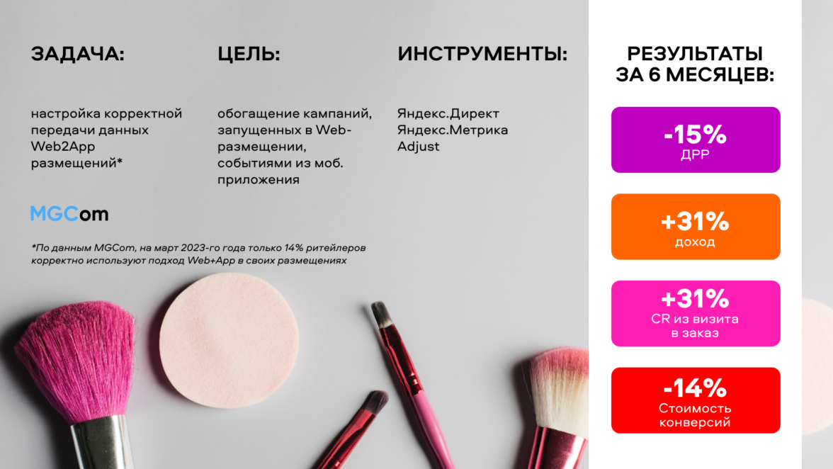 Кейс РИВ ГОШ и MGCom: как за счет настройки WEB+APP снизить ДРР на 15%