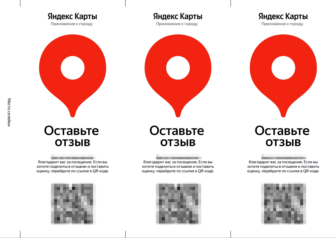 Яндекс предоставляет своим пользователям опцию распечатки своих промоматериалов-пирамидок. Мы разместили такие распечатки с QR-кодами для быстрого оставления отклика в ЯК через сканирование на стойке администратора в офисе заказчика. Благодаря этому поток отзывов начал достаточно быстро расти.