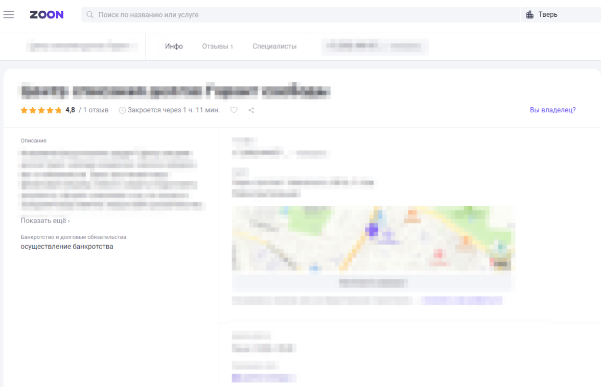 В случае с юридическими компаниями особенно важно заполнять разделы, посвященные услугам (в данной ситуации это «Особенности») — как минимум перечислить подробные наименования услуг, оказываемые организацией. Без этого она не попадет в выдачу, если пользователь из целевой аудитории введет на поиске запрос формата «Оформление наследства» или аналогичный. То есть потенциальный клиент просто не увидит организацию в перечне поисковика.
