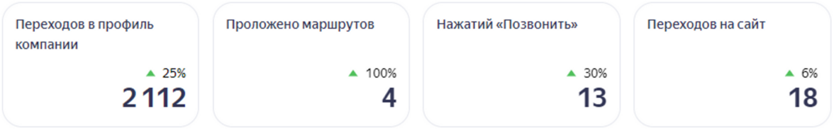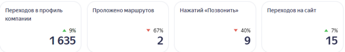 Уже через месяц мы зафиксировали, что популярность бренда выросла по всем ключевым позициям анализа. В первую очередь отметили результативность переходов из карточки Яндекс Карт в профиль организации, а также на ее сайт: