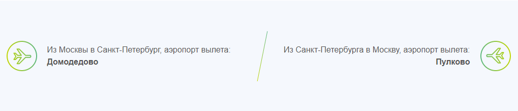 Мы увидели, что часто встречаются запросы формата «Москва Домодедово Санкт-Петербург», поэтому на страницы направлений мы добавили блок с вылетом, чтобы учитывать упоминание аэропорта. Это помогло не упускать поисковый трафик