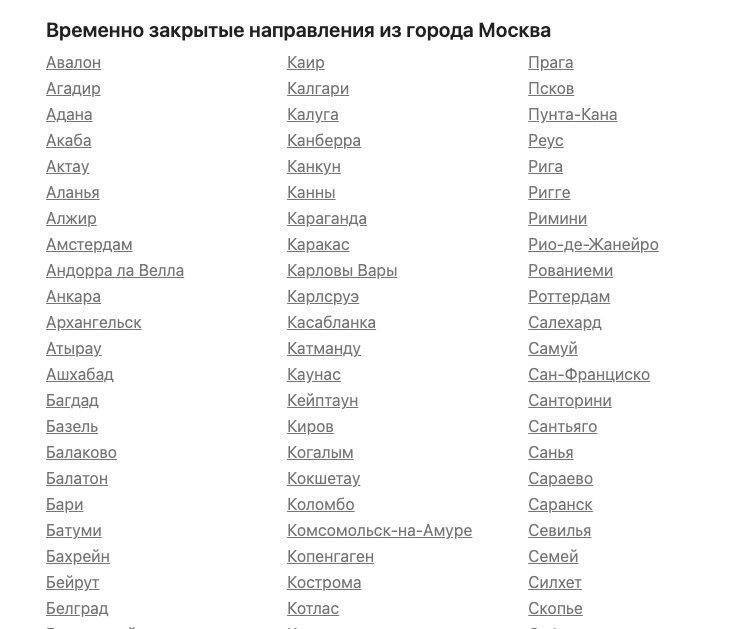 Во время ведения проекта мы обнаружили, что есть проблема с поддержкой актуального списка направлений. Например, если направления были временно недоступны, то приходилось полностью закрывать страницу. Это означало, что страница пропадёт из поисковой выдачи и впоследствии её придётся заводить заново.
