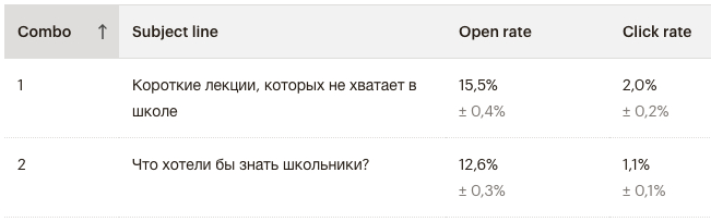 Спустя восемь месяцев после запуска у нас накопилось достаточно данных по открытиям, кликам и отпискам, чтобы начать сознательно на них влиять. Тогда мы запустили А/В-тестирование, чтобы найти такой формат писем, который будет наиболее интересен аудитории.