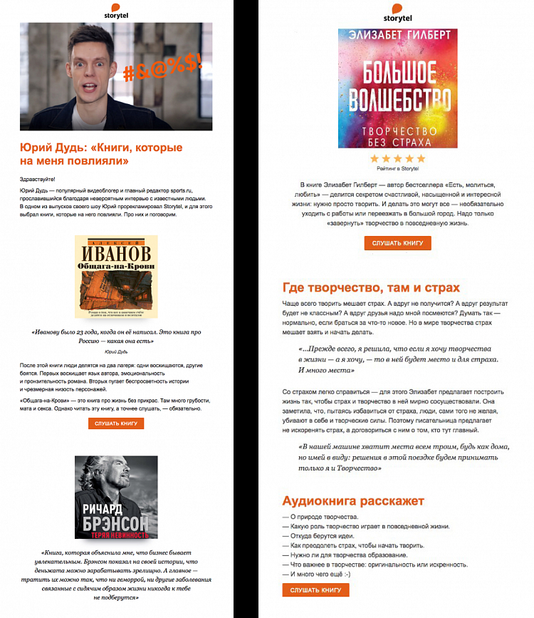 Storytel решили запустить рассылку, чтобы поддерживать интерес к сервису и помогать пользователям ориентироваться в базе из тысяч аудиокниг.