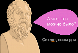 В цитате Сократа используем вместо кириллической «а» греческую альфу. Сократ же грек. Чтобы довести шутку до чистого абсурда, мы добавили подпись «Сократ, наши дни»