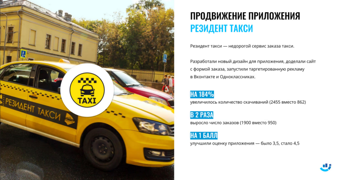 «Резидент такси» — это доступное такси из Москвы, основанное в 2007 году. В 2015 году было запущено приложение, и компания обратилась к нам с просьбой о помощи в его раскрутке.