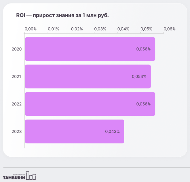 Для известных брендов растить знание становится все дороже и дороже. Здесь и далее ROI — прирост знания на 1 млн рублей