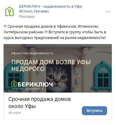Информирование о новостях. Используя общественно значимые новости по недвижимости мы конвертировали интересующихся в подписчиков продвигаемой группы