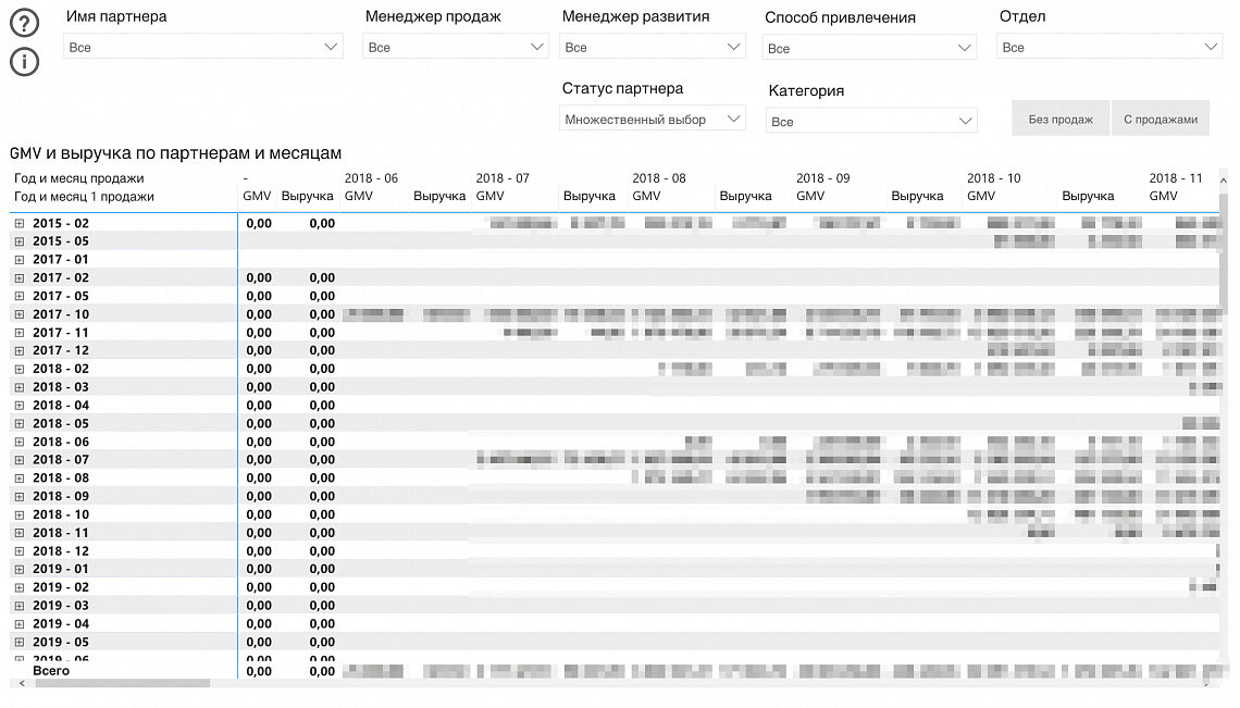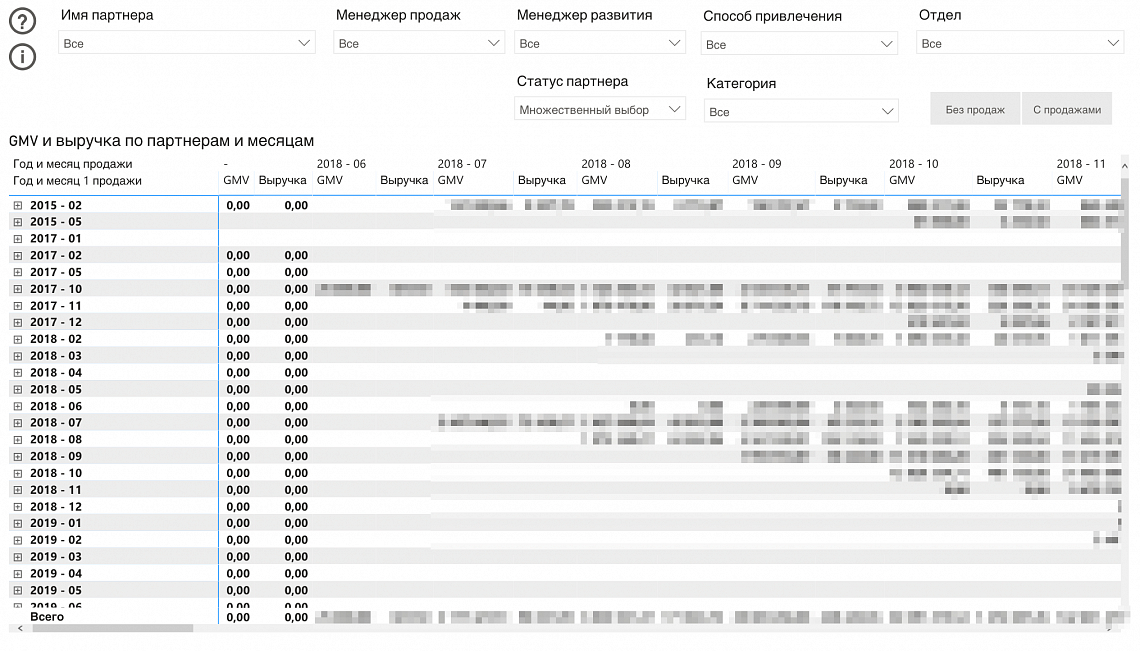 Отчёт по партнёрам я использую ежедневно, чтобы смотреть на динамику наших партнёров: какой у них объём продаж, сколько у них новых продаж и другие важные метрики, которые касаются только партнёров.