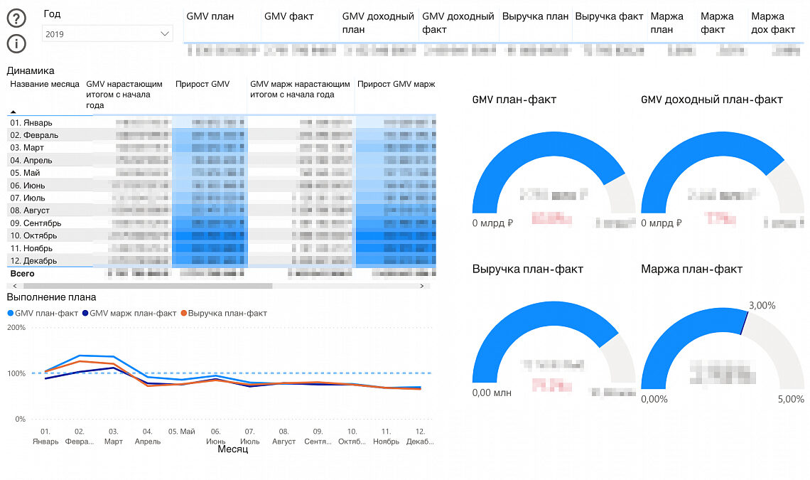 Новый план-факт работает по-другому: он автоматически собирается в PowerBI и рассчитывает маржу в процентах.