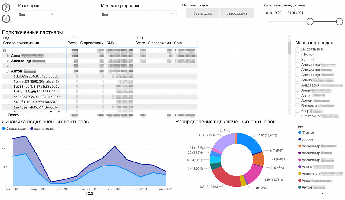 Например, сейчас мы в процессе изменения дашборда по бонусам менеджеров, так как в компании начали внедрять новую систему мотивации. Смысл в том, что теперь менеджеры больше замотивированы подключать не только виджет на сайте партнера, но и другие фичи.