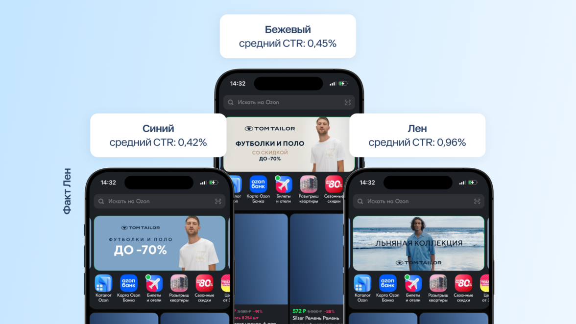 Для продвижения выбрали приоритетные для компании товары — футболки и поло, коллекцию одежды из льна. Каждый креатив запускали в нескольких вариантах — это помогло найти баннеры, которые дают высокую конверсию, и отключить малоэффективные.