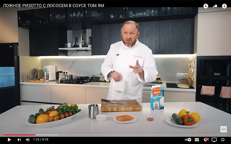 При утверждении кулинарных влогов для интеграций команда искала каналы, основанные на личном бренде и уникальном стиле ведущего. В дополнение к каналам с видеорецептами рассматривались и авторские каналы с известными медийными ведущими. Шеф-повар Константин Ивлев предложил рассказать о бренде «Увелка» в выпуске, посвященном приготовлению ризотто с лососем в соусе том ям. Блогер выбрал ненавязчивую манеру. Он демонстрировал продукт на камеру, при этом комментарий касался блюда и его ингредиентов. Продукт отлично вписался в интерьер кухни и стола, на котором лежали овощи, рыба и специи. Примечательно, что это одна из немногих интеграций, у которой не было заранее согласованного сценария. На препродакшене команда согласовала рецепт блюда, а его приготовление уже стало авторской и удачной импровизацией. Видео получило почти 6 тыс. лайков и 500 комментариев аудитории.