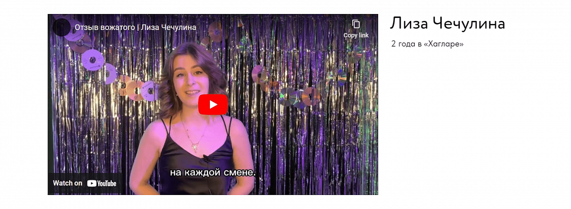 Также у нас была гипотеза, что видеоматериалы помогут привлечь внимание аудитории и лучше донесут атмосферу работы. Мы подготовили ТЗ, по которым клиент и вожатые должны были снять видео. Это помогло получить живые эмоции, но с важными тезисами, которые помогают привлечь качественные кадры.