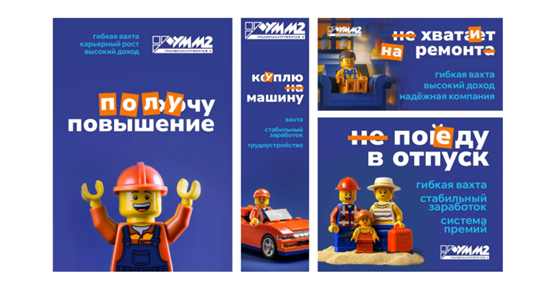Вторая гипотеза основывалась на использовании образов Лего в качестве визуального воплощения строительных профессий. Концепция конструктора напрямую ассоциируется со строительством, созданием сложных конструкций из отдельных элементов, что перекликается с работой специалистов в данной сфере.