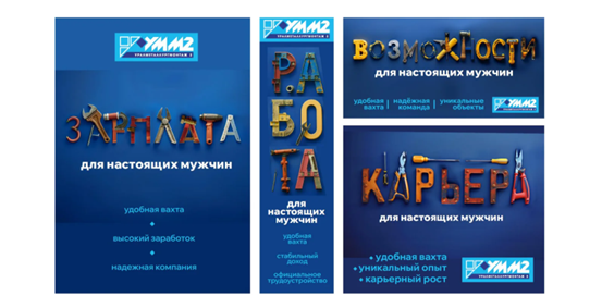 Использовались простые, емкие фразы без сложных формулировок, рабочая лексика. Строгий, понятный визуальный стиль с контрастными выделениями ключевых смыслов. Этот подход позволяет быстро донести главное сообщение, делает рекламу понятной и убедительной для целевой аудитории. Это креативное решение было использовано при медиаразмещениях в оффлайн и диджитал среде.