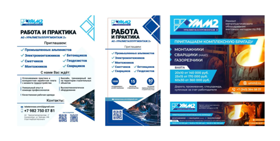 Так, основными акцентами в коммуникации стали конкурентоспособная заработная плата, официальное трудоустройство, стабильность, надежность и опыт.Ранее клиент уже размещал рекламные материалы для привлечения персонала, которые выглядели следующим образом: