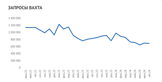 По данным Яндекс Вордстат, снижение интереса к работе вахтовым методом становится заметной тенденцией среди сотрудников промышленных предприятий. Это дополнительно осложняет ситуацию на рынке труда, где уже ощущается нехватка квалифицированных специалистов. В условиях высокой конкуренции за кадры работодателям приходится искать новые способы повышения привлекательности вахтового метода.