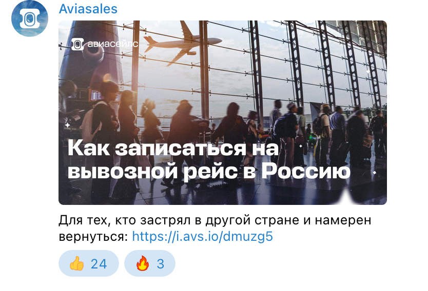 Сервис продолжает публиковать контент: актуальная информация по открытым странам, работа платежных систем и банковских карт, новости от авиакомпаний. Тот случай, когда бренд поддерживает и дает действительно важную информацию.