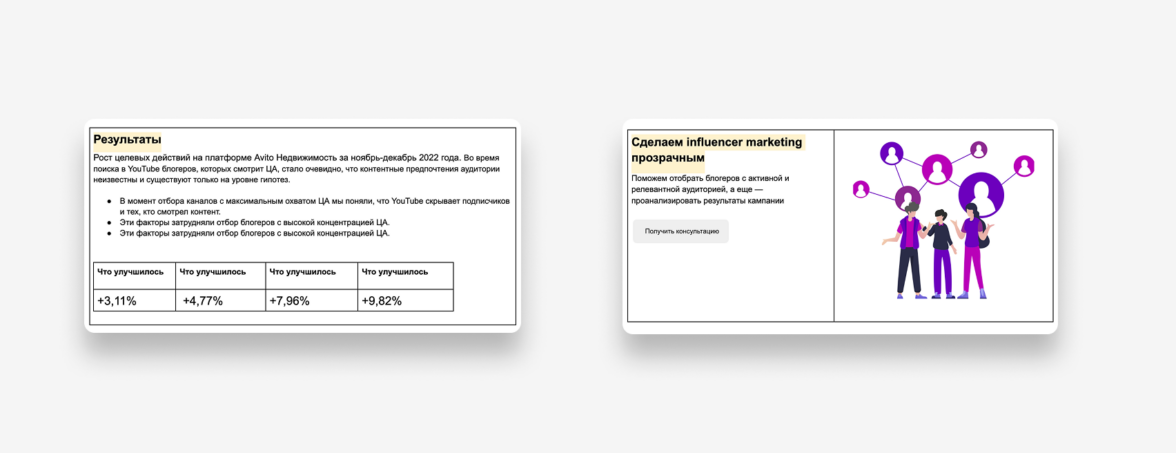 В будущем авторы просто брали за основу этот шаблон и заполняли его по фактуре с презентации или встречи с клиентом. Так мы смогли сэкономить время на работу и быстрей приносить готовые тексты