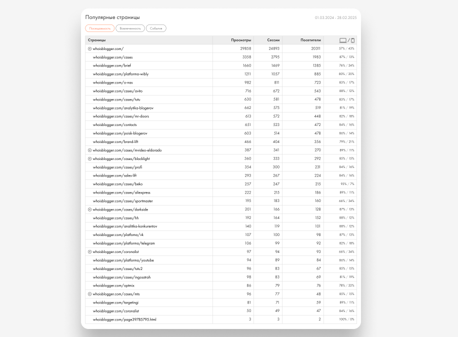 В среднем кейсы дочитывают до конца 34,07% пользователей. Для длинных текстов это хороший показатель — значит, аудитория действительно вовлекается в материалы.