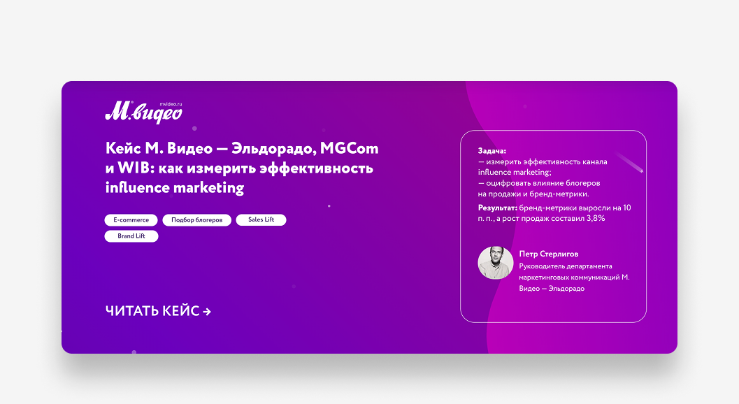 Лучший результат показал кейс «М.Видео-Эльдорадо» — 38% ER. Это говорит о том, что тема была интересна, а подача удержала внимание читателей.
