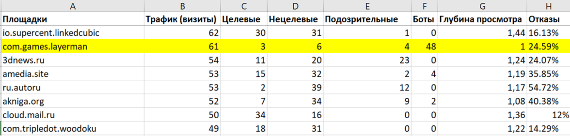 Мусорный трафик с площадок РСЯ, включая мобильные приложения, не редкость. Чаще всего ботов «нагоняют» сайты в домене com и малоизвестные мобильные приложения. Однако с недействительными кликами можно столкнуться и на популярных ресурсах. Неизвестно, намеренно или случайно они приводят такой трафик, в любом случае, это негативно сказывается на эффективности рекламных кампаний.
