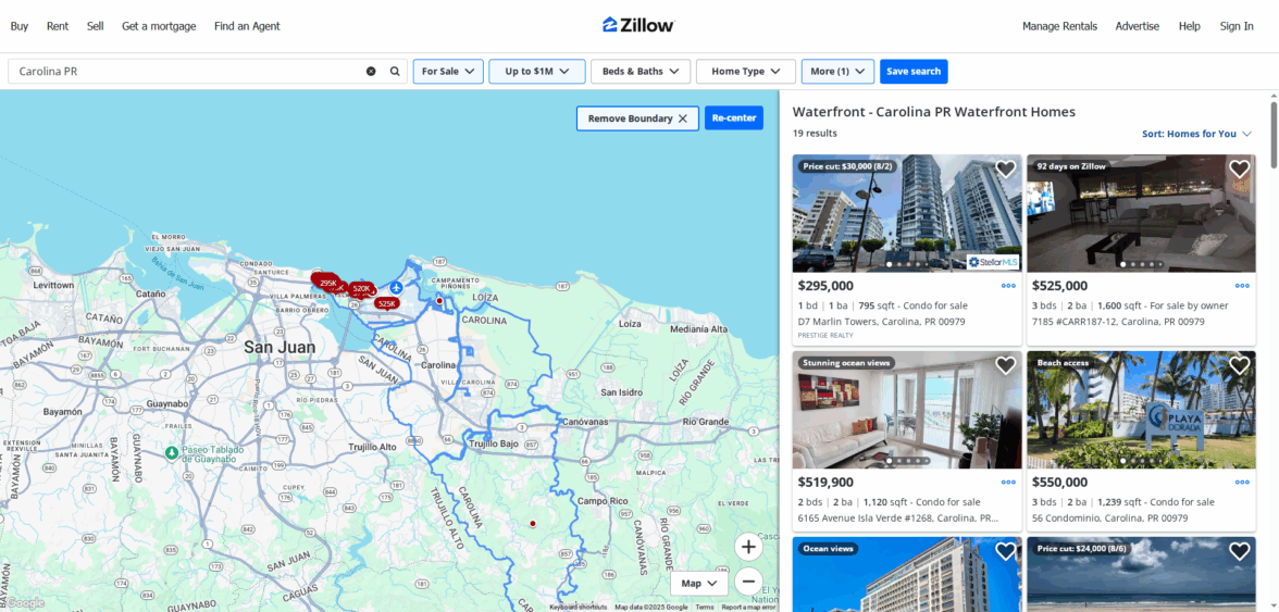 Поисковой запрос: дом в Каролине до $1M для семьи с детьми, неподалеку от водоема