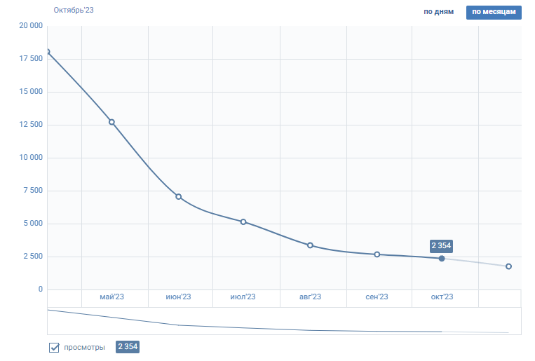 Всего за 9 месяцев работы мы выложили более 100 постов, сняли 18 клипов и один длинный ролик для ВК видео, который без дополнительных усилий попал в охваты и получил более 52 тысяч просмотров на момент написания статьи и продолжает набирать каждый месяц более 2000 просмотров.