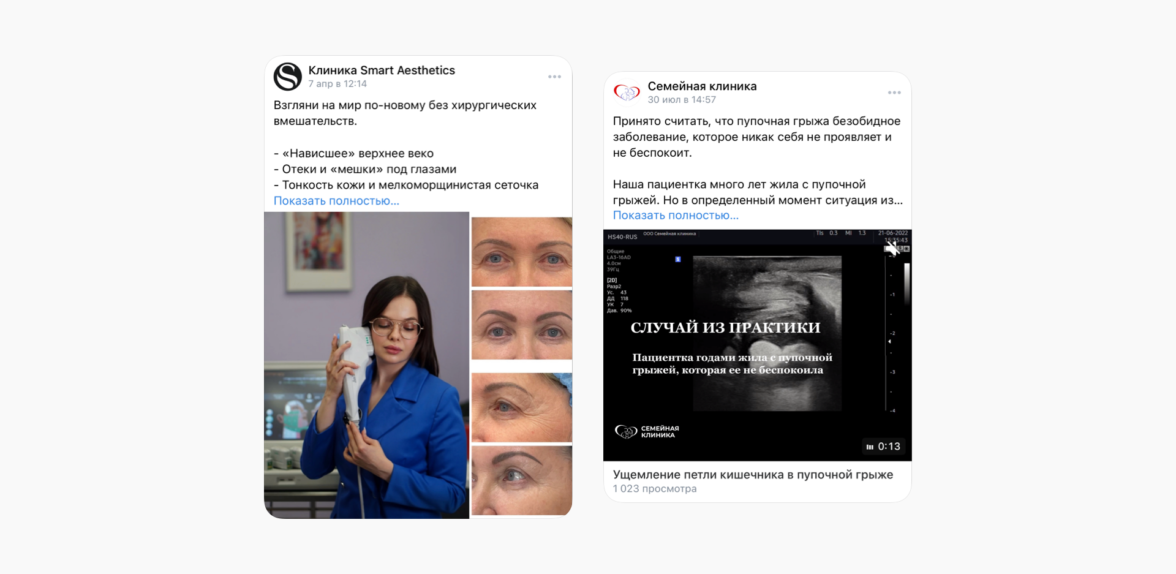 Кейсы. Не забывайте периодически делиться с подписчиками результатами работы. Если можно этот результат показать на фото (например, в косметологии) — здорово, если нет — опишите итоги лечения тезисно, подкрепите отзывом. Такие публикации должны стать частью контент-плана клиники — однозначно, это повысит лояльность, ведь кейсы служат доказательством профессионализма докторов.