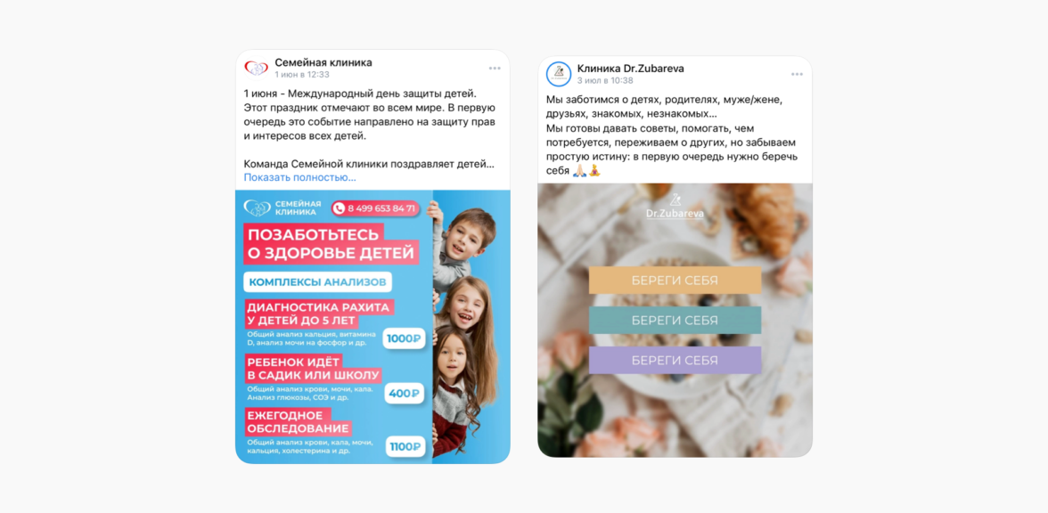 Трансляция ценностей. «Подобное притягивает подобное» — клиенты всегда поддерживают бренды, схожие по ценностям и жизненным убеждениям. Опишите то, что важно для специалистов клиники, поделитесь концепцией — так вы завоюете доверие тех, кто придерживается тех же принципов.