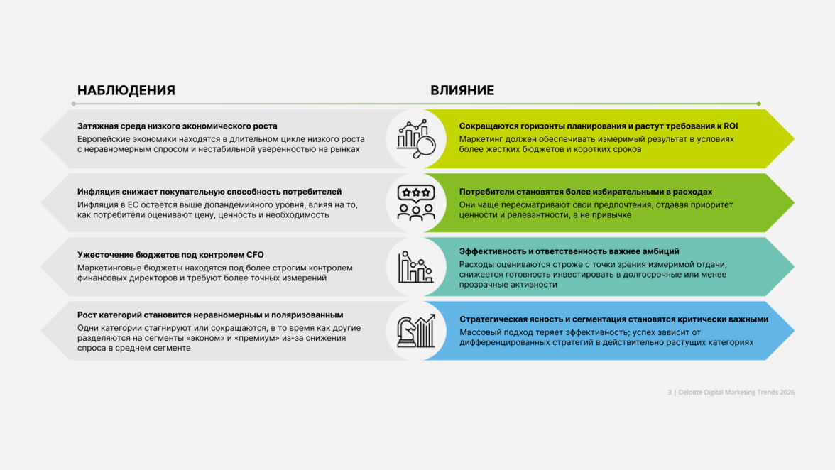 В статье мы разбираем ключевые изменения на рынке на основе отчета Deloitte — Marketing Trends 2026: