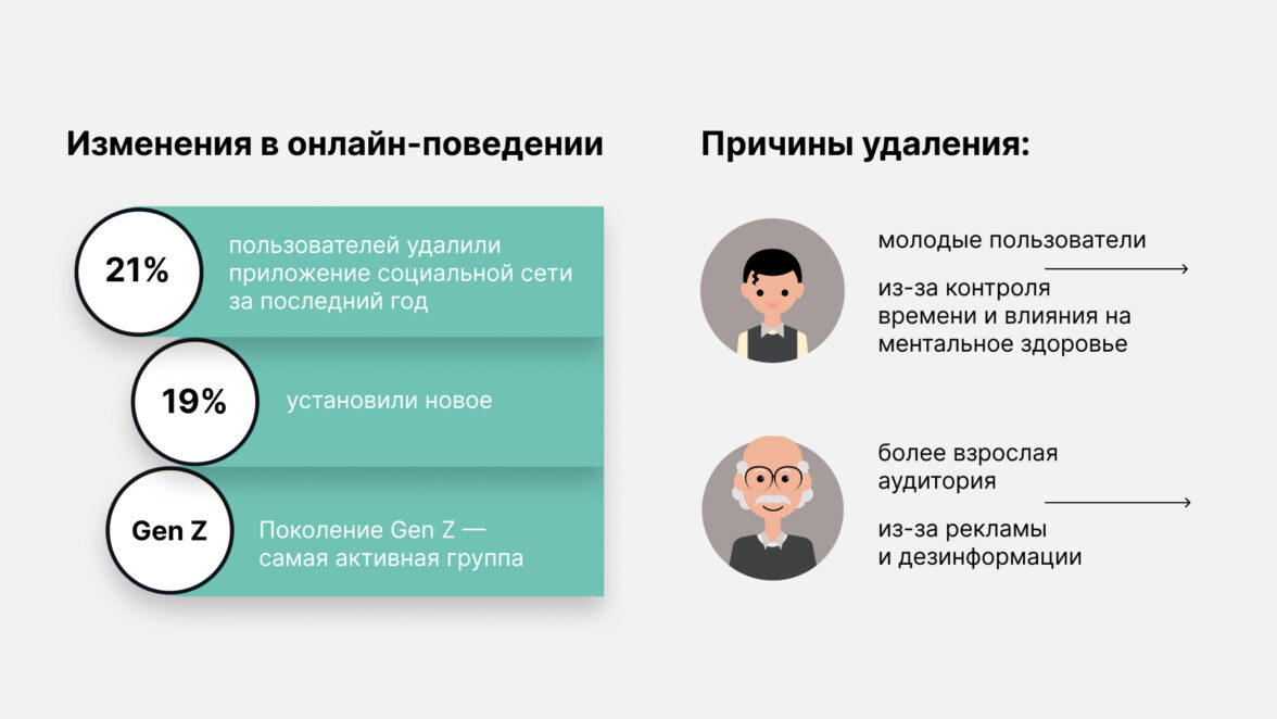 — Снижение терпимости к перегрузке контентом. Люди удаляют соцсети, отключают уведомления и ограничивают экранное время.