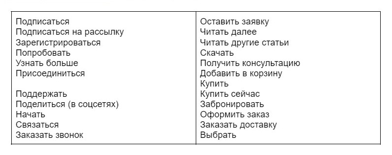 Сделать призыв к действию понятным и использовать глагол. Пользователь должен понимать, что произойдёт, когда он нажмёт на кнопку: покупка, отправка заявки, подписка и так далее.