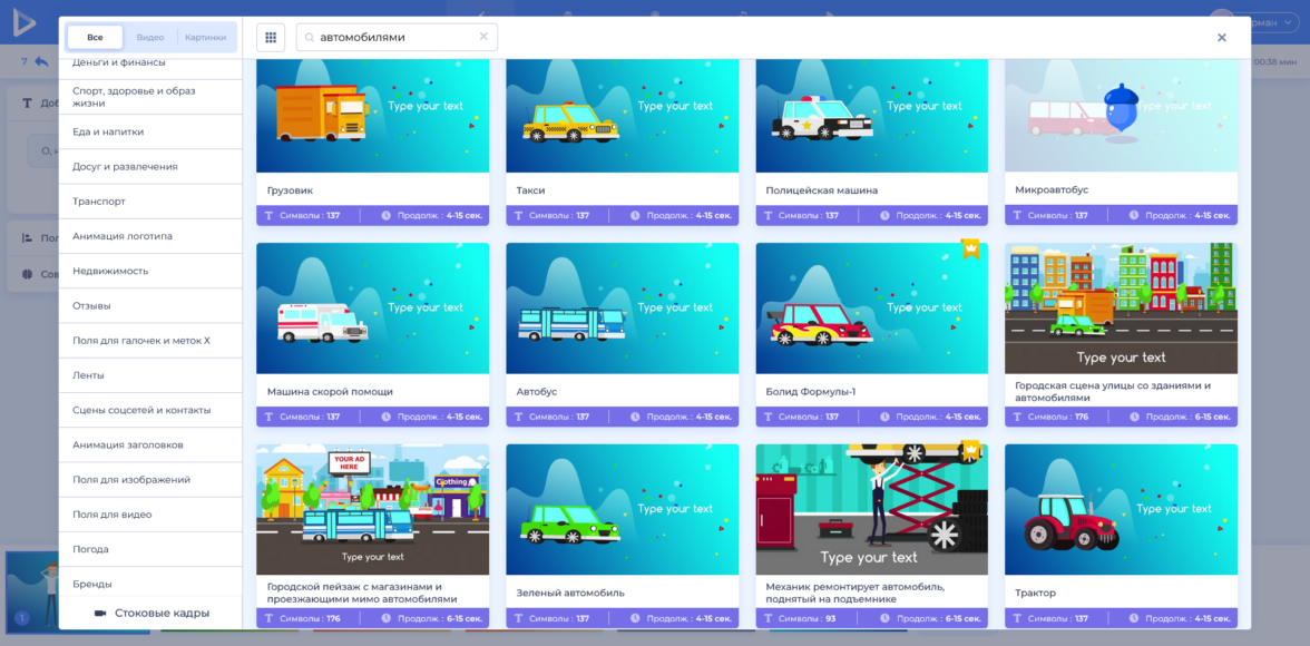Принцип работы прост: выбираем подходящий набор шаблонов из тысячи доступных, компонуем видеоряд из подходящих, настраиваем их под себя, добавляем озвучку — и получаем именно то, что нужно: