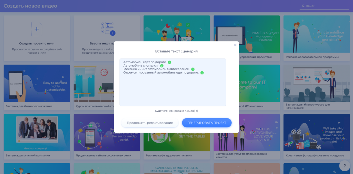 По запросам вроде «ИИ-генератор видео из текста» с легкостью находится не один десяток сервисов. При беглом знакомстве с ними все выглядело просто — пишем сценарий будущего шедевра, и искусственный интеллект подбирает красивый и гармоничный видеоряд, а также добавляет голосовое сопровождение и субтитры. Именно это показывают промо-ролики большинства ИИ-платформ.