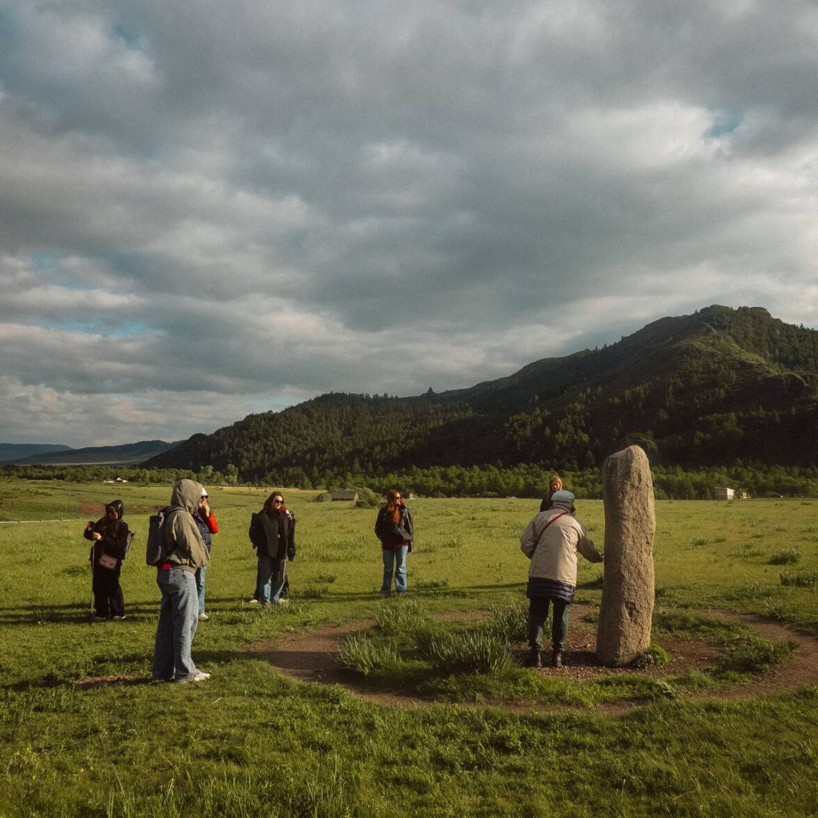 Затем группа посетила музей Улуг Хуртуях Тас, где прошла встреча по национальным обычаям и экскурсия к древнему менгиpу. Участникам рассказали о сакральном значении каменного изваяния — стелы Улуг Хуртуях Тас, одного из самых почитаемых культовых камней Хакасии. Эта каменная стела, вкопанная в землю 4–6 тысяч лет назад на месте геологического разлома с мощным энергетическим излучением, символизирует Великую Матерь и является центром жизненных сил и благосостояния. Особое значение стела имеет как чудо материнства — считается, что она помогает даже тем, кому официальная медицина вынесла приговор.