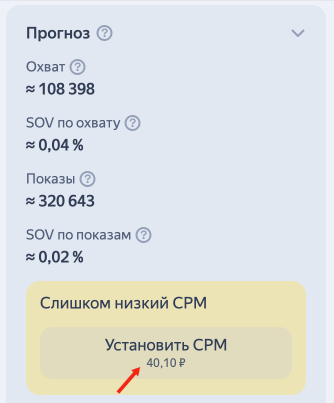 Система даст прогноз по охвату, предложит рекомендованный CPM.
