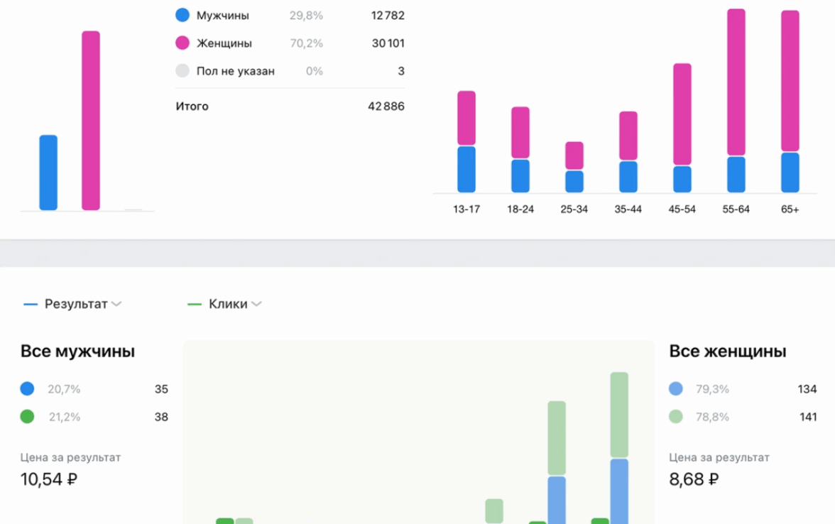 Статистика показала, что большая доля пользователей, вступавших во взаимодействие с объявлениями, оказалась представителями старших возрастных групп и подростков. Очевидно, бюджет расходовался на аудиторию, которая абсолютно не была заинтересована в предлагаемом продукте. Итог — нулевые продажи.