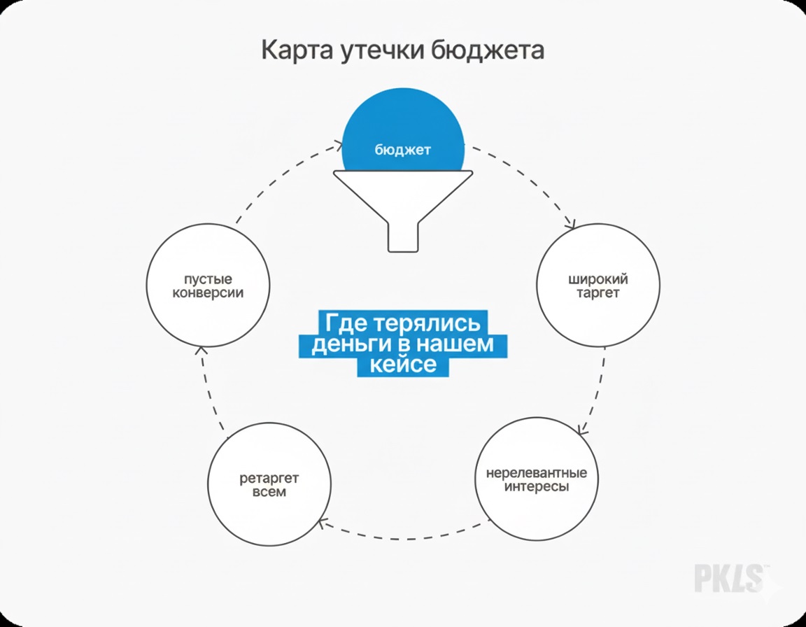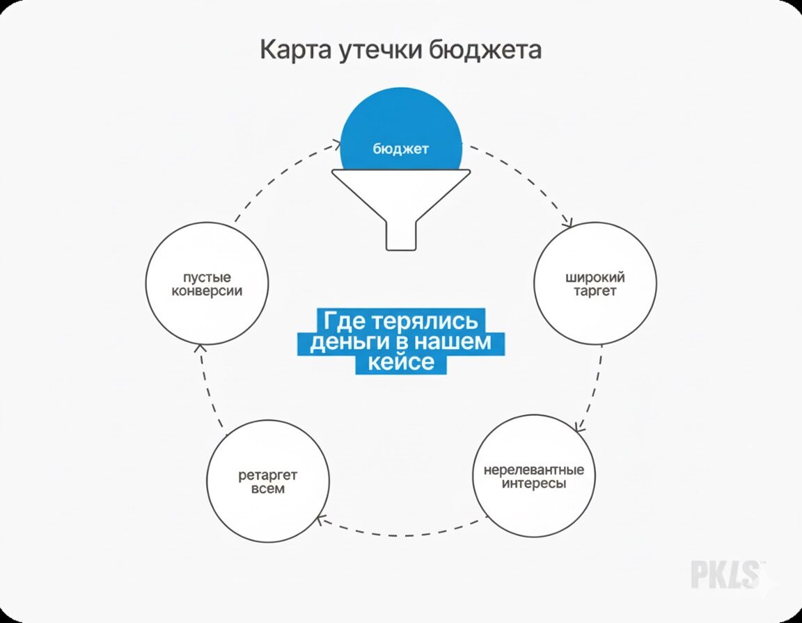 В итоге аудит выявил полный набор проблем: весь бюджет фактически сливался впустую. Клиент платил за нерелевантные показы, холодную аудиторию и пустые конверсии. Самое обидное — это можно было заметить гораздо раньше, не погружаясь глубоко в настройки.
