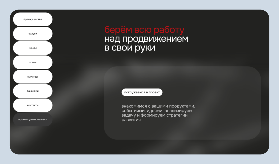 Этапы работы агентства стали более конкретными, чтобы стало понятнее, чем оно занимается. На старом сайте было меньше конкретики, как происходит взаимодействие с клиентами. Это могло отталкивать холодных лидов.
