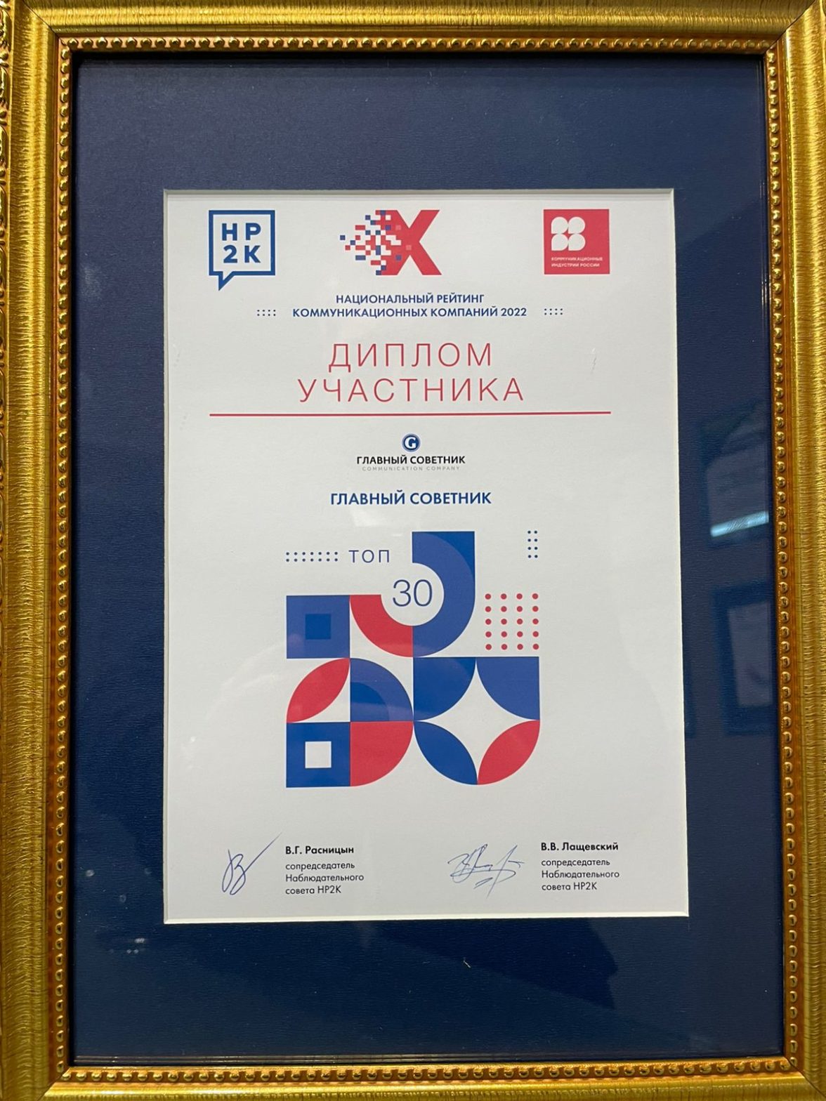 Коммуникационное агентство «Главный Советник» вошло в топ-30 Х Национального рейтинга коммуникационных компаний НР2К-2022