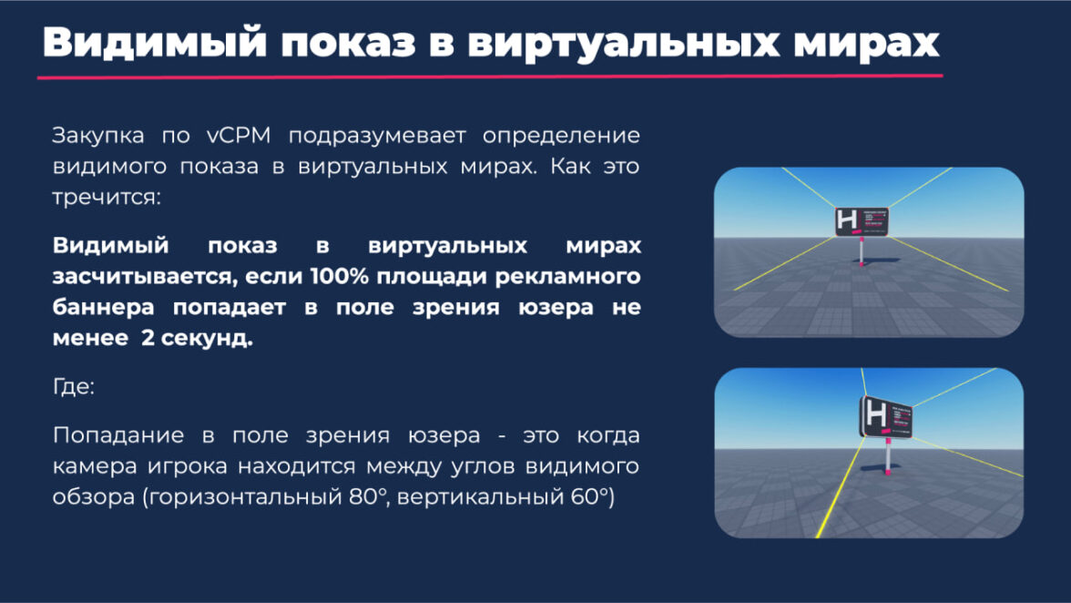 Формат позволяет транслировать брендовый видеоконтент на любые виртуальные поверхности внутри миров. Реклама может обновляться динамически, поддерживает разные сценарии взаимодействия и легко встраивается в игровые механики.