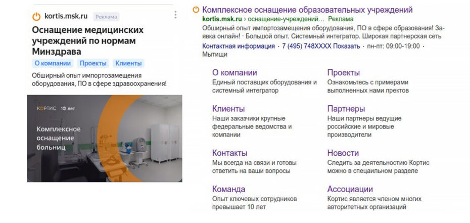 Созданные текстово-графические объявления не просто рекламировали услуги, а доказывали экспертизу: показывали уникальный опыт интегратора в проектировании объектов строго по нормам Минздрава и Минпросвещения, а также демонстрировали реальные решения по замене зарубежного ПО и оборудования.