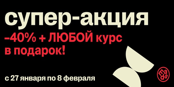 Если ты давно планировал прокачать креативные, стратегические или лидерские навыки — сейчас самое время. До 8 февраля mads дарит второй курс при покупке основного со скидкой до 40%. Без сложных условий и с поддержкой менеджера на каждом этапе.