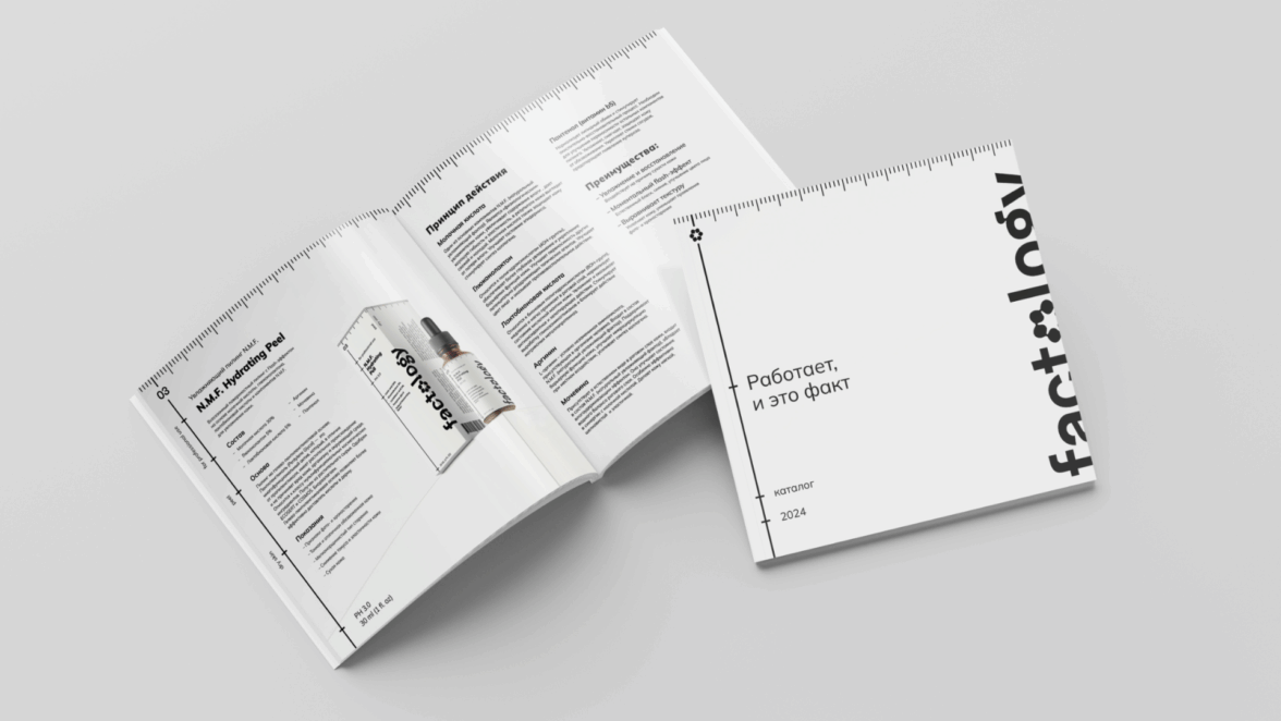 Визуальный язык Factology — это профессиональная косметика, которая говорит на языке медицины. Мы ушли от любых ассоциаций с масс-маркетом и бьюти-полками, где «красиво» побеждает «эффективно».